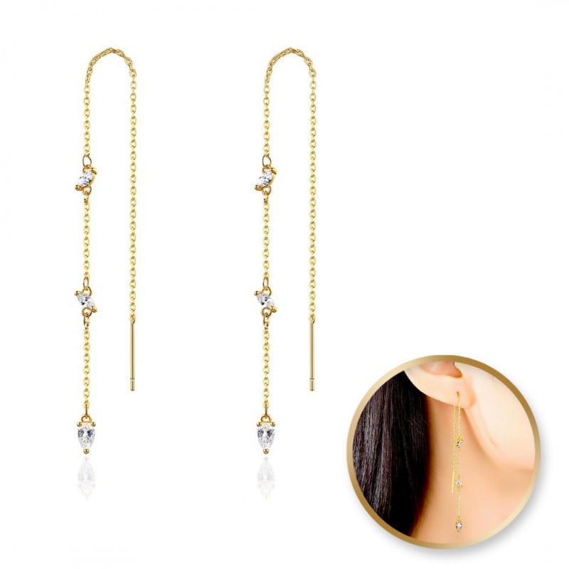 Kolczyki ze stali chirurgicznej platerowanej 14 karatowym złotem Eleganckie i stylowe kolczyki. Kolor: Złoto WYMIARY:Długość: 13 cmSzerokość:0,3 cmrodzaj zapięcia: łańcuszkoweProducent: inny Wymiary opakowania:8,5cm x 7cmWaga:2g netto / 4g brutto