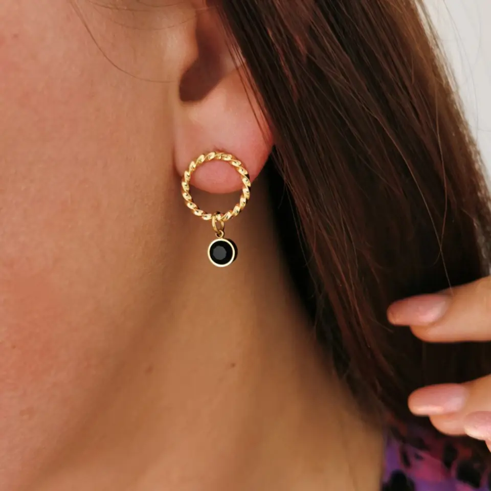 Kolczyki ze stali chirurgicznej platerowanej 14 karatowym złotem Eleganckie i stylowe kolczyki. Kolor: Jasne złoto Wymiary:Długość: 2 cmśrednica kółka 1,4 cm Rodzaj zapięcia: sztyft STAL CHIRURGICZNA jest odporna na warunki atmosferyczne, nie ulega korozji, nie rdzewieje, nie śniedzieje.
