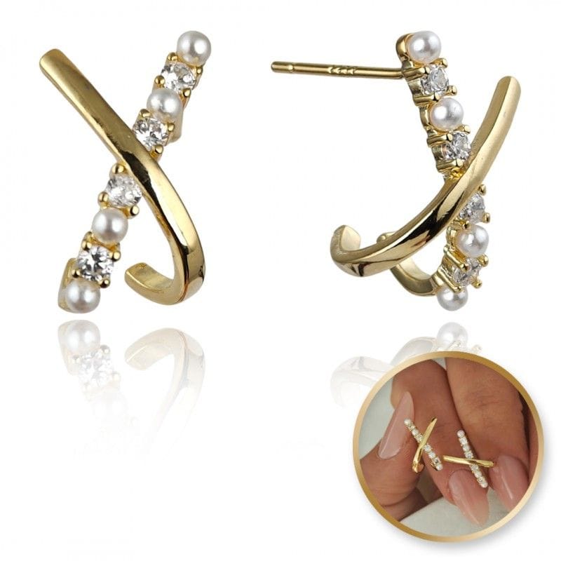 Kolczyki ze stali szlachetnej pozłacanej 14k złotem z cyrkoniami i perełkami KST3333