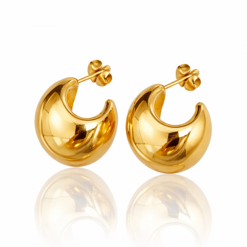 Kolczyki ze stali szlachetnej platerowane 14-karatowym złotemEleganckie i stylowe kolczyki. WYMIARY:1,8 cm x 1,8 cm Wymiar kartonika z opakowaniem:6,5 cm x 10,5 cm Waga netto / brutto: 15 g / 17 g STAL CHIRURGICZNA jest odporna na warunki atmosferyczne, nie ulega korozji, nie rdzewieje, nie śniedzieje.