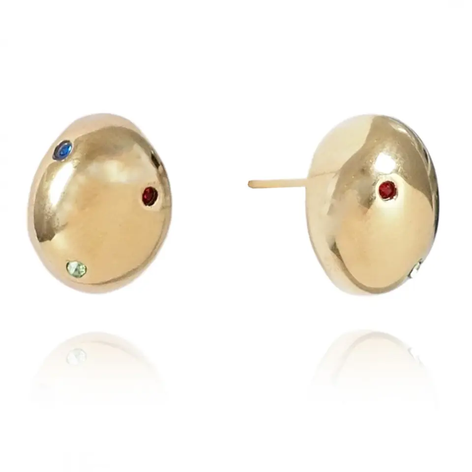 Kolczyki ze stali chirurgicznej platerowanej 14 karatowym złotem Eleganckie i stylowe kolczyki.WYMIARY: 0,8 x 1 cm Waga: 9 gKolor: jasne złotoRodzaj zapięcia: sztyftProducent: innySTAL CHIRURGICZNA jest odporna na warunki atmosferyczne, nie ulega korozji, nie rdzewieje, nie śniedzieje.