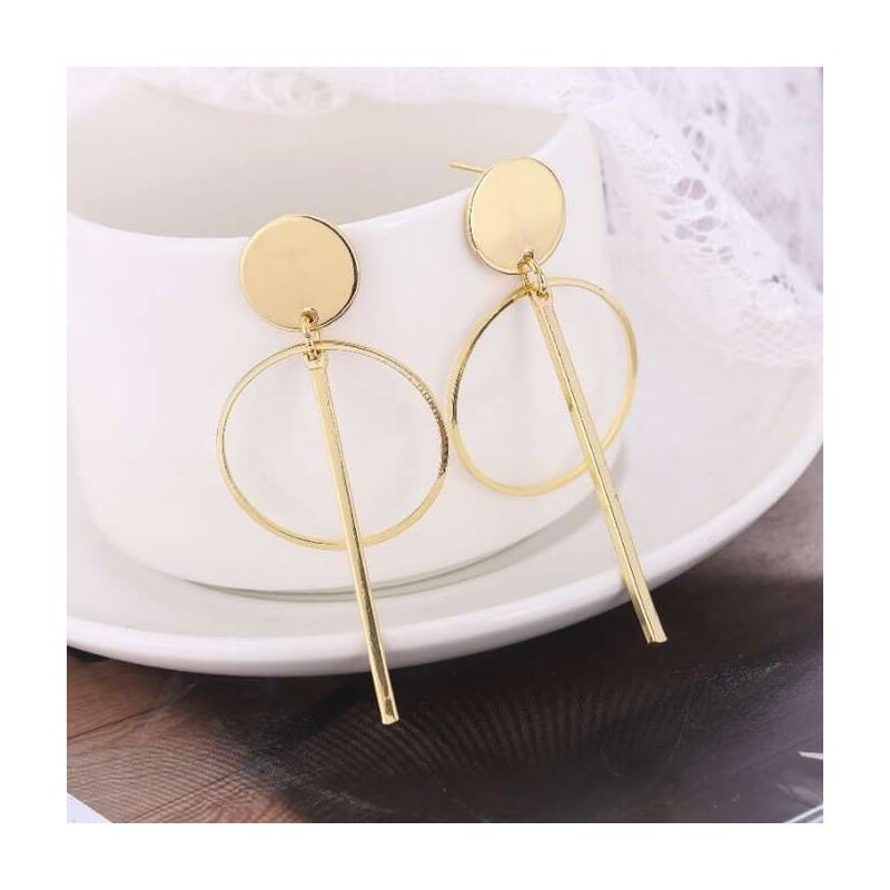 Kolczyki wiszące. Pięknie wyglądają. Pasują zarówno do eleganckich sukienek jak i żakietów i marynarek. Wykonane są ze stopów metali nieszlachetnych.Nie zawierają niklu ani chromu.Wymiary : długość: 6,5 cm, szerokość okręgów: 1,8 cm oraz 3 cmNie moczyć! Unikać kontaktu z wodą ! A wtedy posłuży bardzo długo!Nie zwlekaj - kup je już dziś !