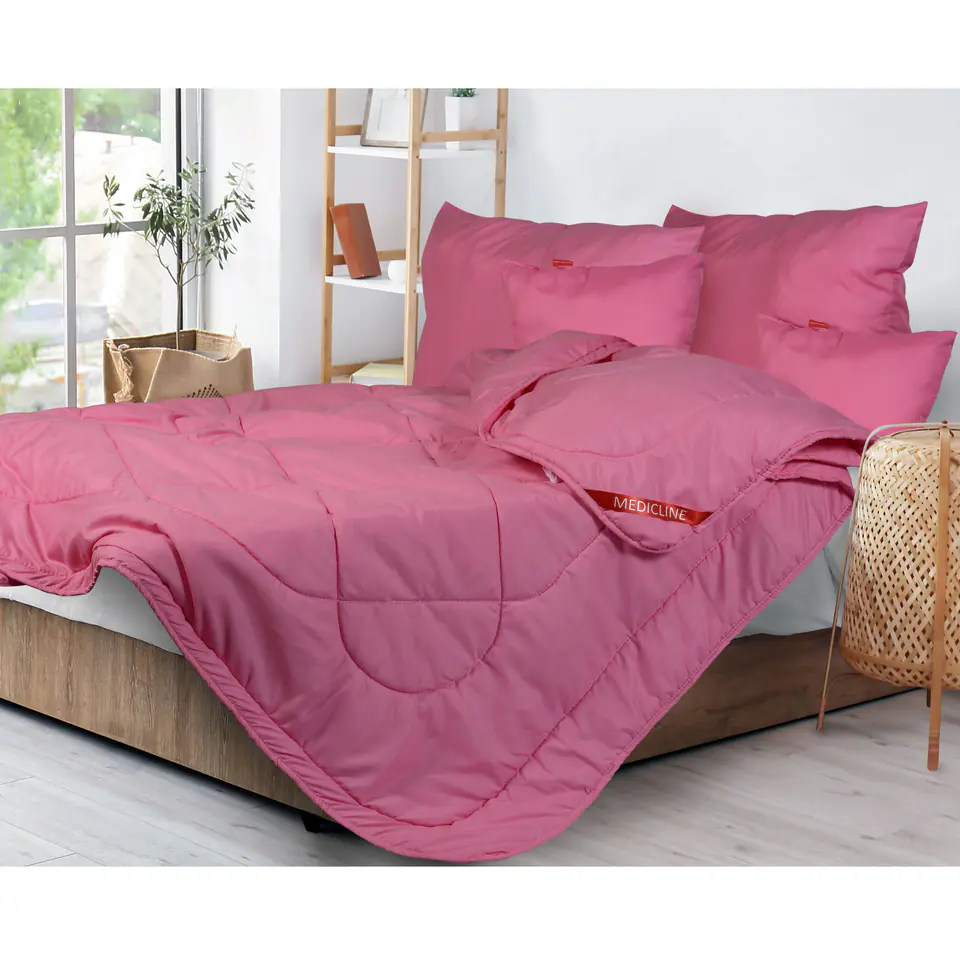 - Kołdra całoroczna, mikrofibra różowa pikowana niciowo 140 x 200 cm