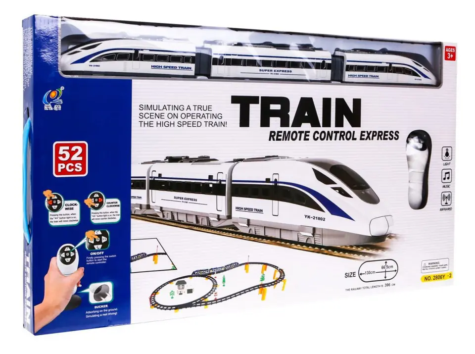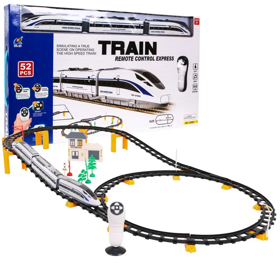 Zestaw składa się z 52 elementów, długość toru aż 396 cm. Pociąg sterowany jest pilotem, kierunek jazdy przód i tył. Tory posiadają charakterystyczny i łatwy sposób łączenia, dzięki czemu są bezpieczne i wytrzymałe w użytkowaniu. Kolejka i wagon wykonane są z najwyższej jakości plastiku, co zapewnia długotrwałą żywotność i wytrzymałość poszczególnych elementów zestawu. Zabawka posiada funkcje dźwiękowe (odgłos jazdy) i świetlne. Zabawka przeznaczona jest dla dzieci od 3 roku życia i posiada certyfikat CE. Zabawka zasilana jest bateriami typu 3 x AA - pociąg (brak w zestawie) oraz 2 x AA - pilot (brak w zestawie).
