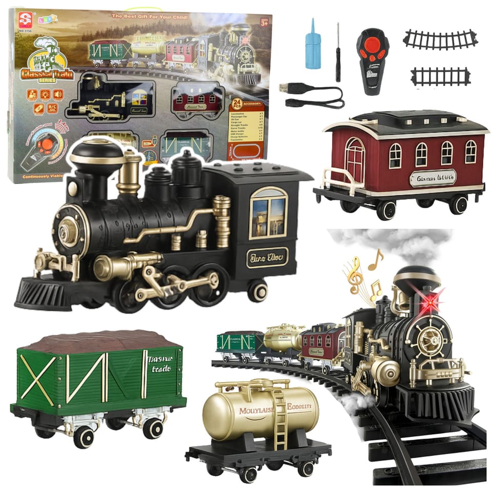 Kolejka elektryczna Classical Train Series to wyjątkowy zestaw dla dzieci, które uwielbiają realistyczne zabawki, interaktywne funkcje i tworzenie własnych scenerii kolejowych. Zestaw łączy klasyczny styl pociągów parowych z nowoczesnymi rozwiązaniami technologicznymi, dzięki czemu zabawa staje się niezwykle angażująca i pełna wrażeń. Lokomotywa generuje efekt dymu po dodaniu wody, co zwiększa realizm i pozwala dzieciom poczuć klimat dawnych parowozów.