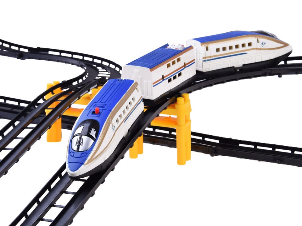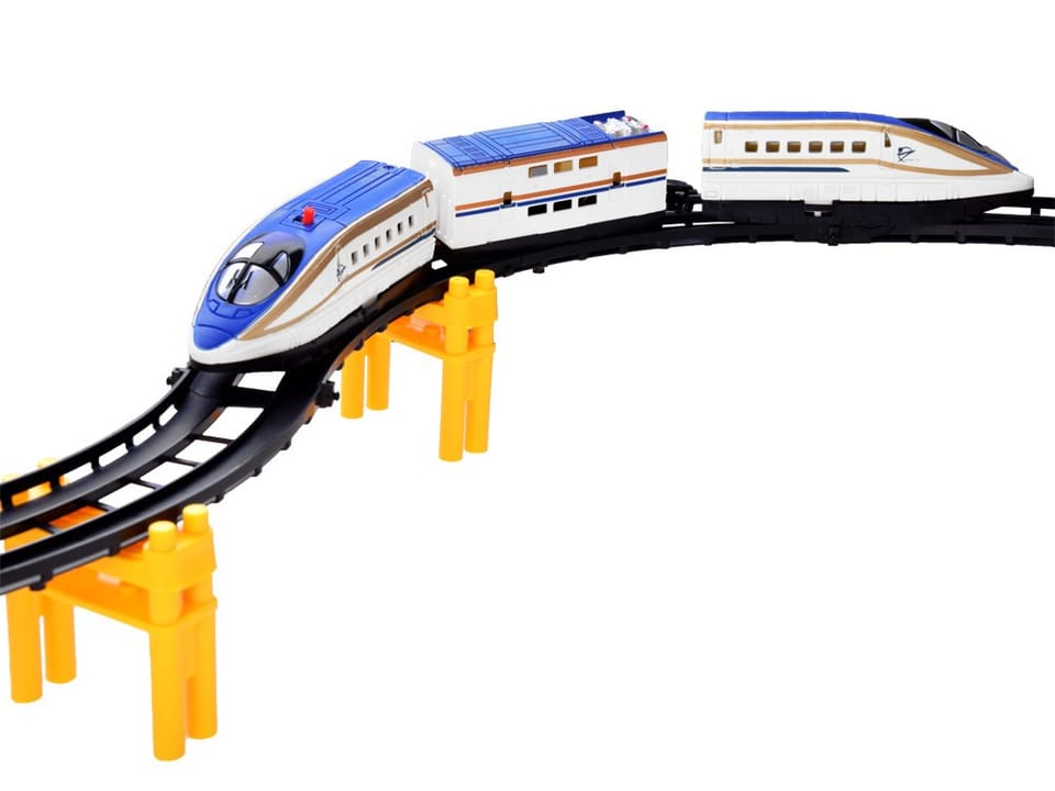 Nowoczesna kolejka elektryczna z wagonami pasażerskimi to wspaniały pomysł na zabawę. Kolejka składa się z trzech wagonów. W całości wykonana z tworzywa sztucznego w przyjemnych kolorach. Wagony można rozczepiać i łączyć ze sobą. W zestawie znajdują się również plastikowe tory. Po złożeniu można uzyskać trasę o maksymalnej długości 626 cm. Dodatkowo zestaw wyposażony jest w elementy pozwalające na zbudowanie wiaduktów. Tory zostały tak zaprojektowane, by pociąg nie wypadał z trasy. Trasa pełna wzniesień, zakrętów i mostów zapewni wiele godzin ekscytującej zabawy.