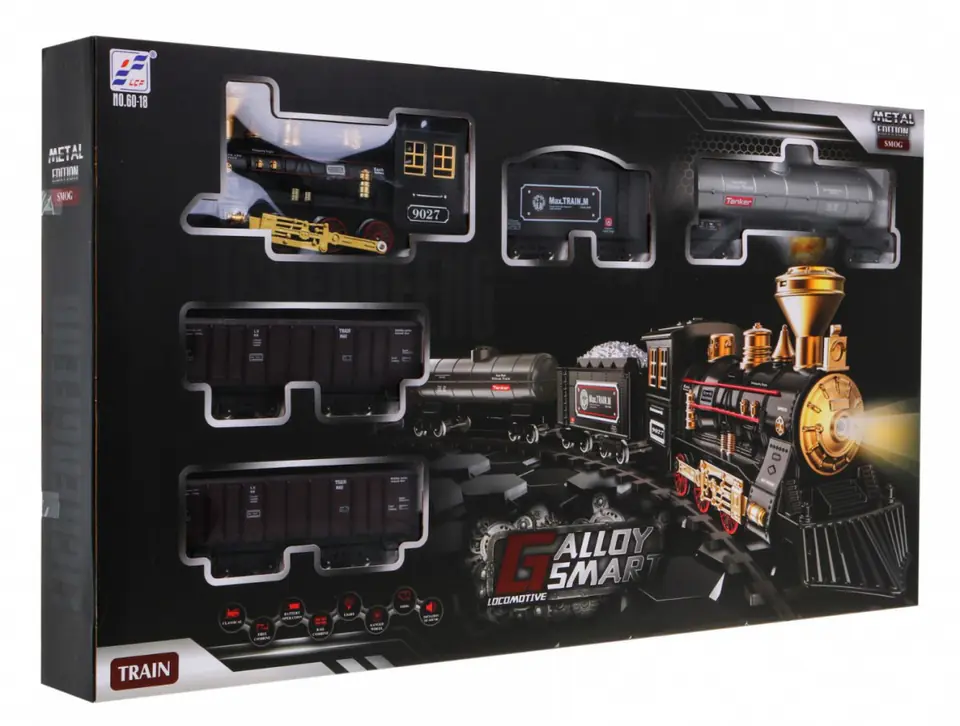 Kolejka z funkcją Dymu dla dzieci 5+ Długi tor + Lokomotywa retro + 4 wagony