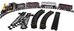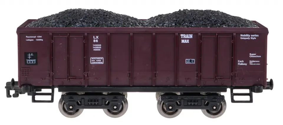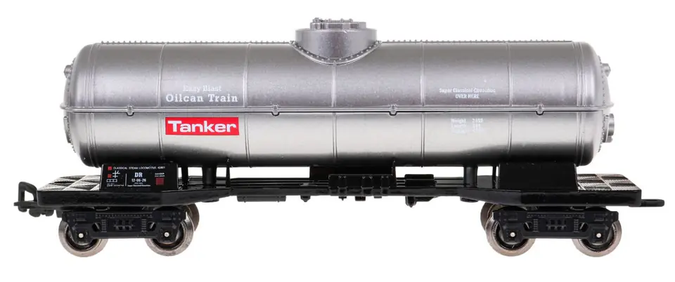 | - lokomotywa ok. 23 cm x 6 cm x 10 cm, - wagony towarowe ok. 15 cm x 6 cm x 8 cm, - wagon cysterna ok. 24 cm x 6 cm x 9 cm, - trasa toru ok. 213 cm x 106 cm, - opakowanie ok. 67,5 cm x 38,5 cm x 8 cm. | |