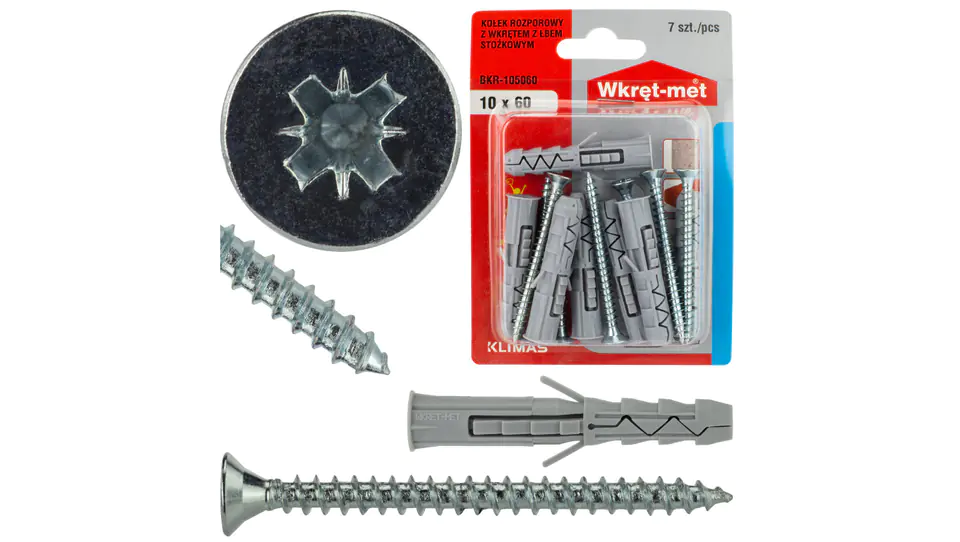 Kołek rozporowy z wkrętem z łbem stożkowym krzyżowym 10x60 /7szt./