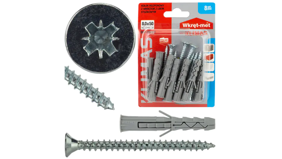 Kołek rozporowy z wkrętem z łbem stożkowym krzyżowym 8x60 /8szt./