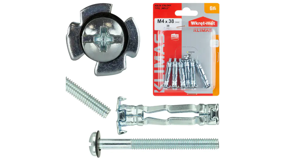 Kołek stalowy typu MOLLY M4x38 /6szt./
