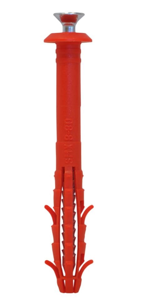 Kołek wbijany do szybkiego montażu z kołnierzem rekomendowany do mocowania w pełnych materiałach budowlanych z czterostronną strefą rozporu .
