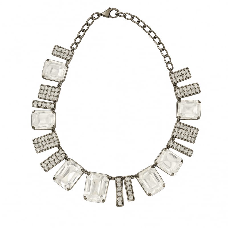 Efektowny naszyjnikŚwietnie pasuje do eleganckich, jak również do codziennych stylizacji.Wykonane ze stopów metali nieszlachetnych. Biżuteria antyalergiczna, nie zawiera niklu ani chromu.Unikać kontaktu z wodą, perfumami.Wymiary:długość obwodu ok. 41 cm (bez regulacji)szerokość ozdoby ok. 7,5 cm (w najszerszym miejscu)regulacja 8 cm