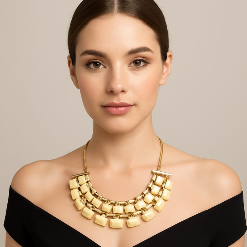 Efektowny naszyjnikŚwietnie pasuje do eleganckich, jak również do codziennych stylizacji.Wykonane ze stopów metali nieszlachetnych. Biżuteria antyalergiczna, nie zawiera niklu ani chromu.Unikać kontaktu z wodą, perfumami.Wymiary:długość całkowita 92 cmszerokość ozdoby 2,2 cm