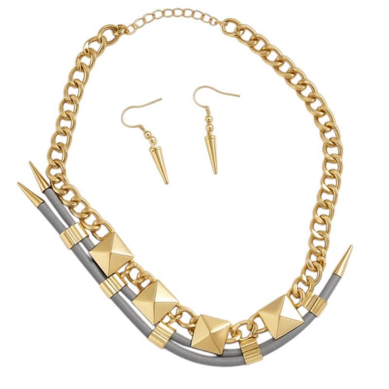 Kolia naszyjnik szpice, szara, złoty łańcuch N401