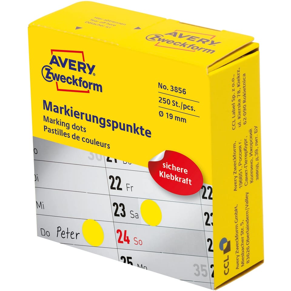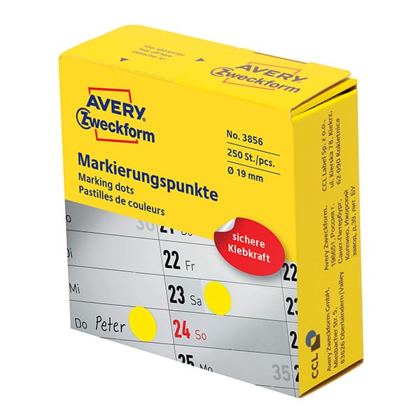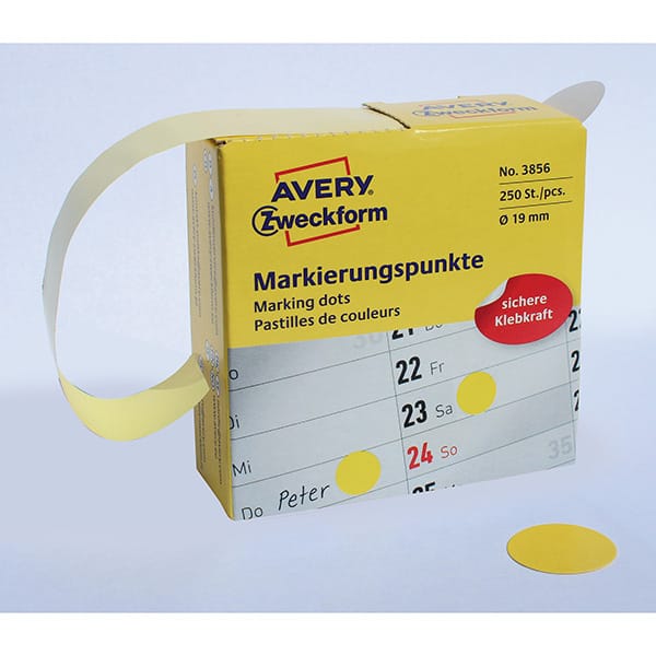 KÓŁKA AVERY śr.19mm TRWAŁE ŻÓŁTE 250