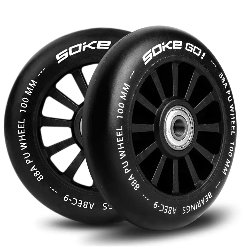 Koła marki SOKE są wykonane z mieszanki poliuretanu o twardości 88A oraz posiadają jedne z najszybszych łożysk: ABEC 9. Doskonale  sprawdzą się na twardych nawierzchniach jak np. asfalt.