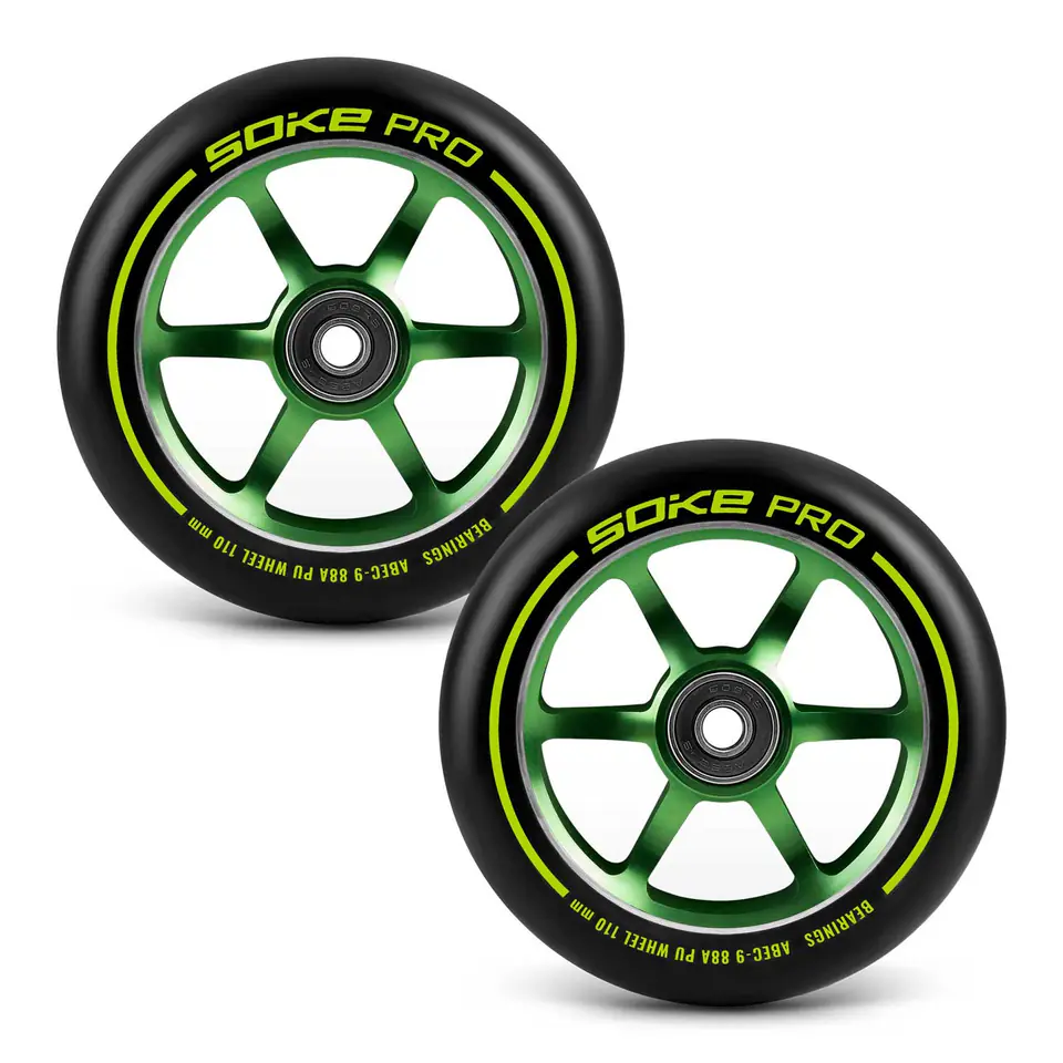 Koła marki SOKE są wykonane z mieszanki poliuretanu o twardości 88A oraz posiadają jedne z najszybszych łożysk: ABEC 9. Doskonale sprawdzą się na twardych nawierzchniach jak np. asfalt.