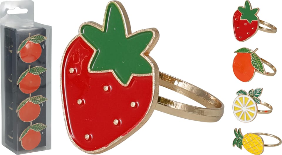 Kółka do serwetek z cynku 4 szt. motyw owocowy