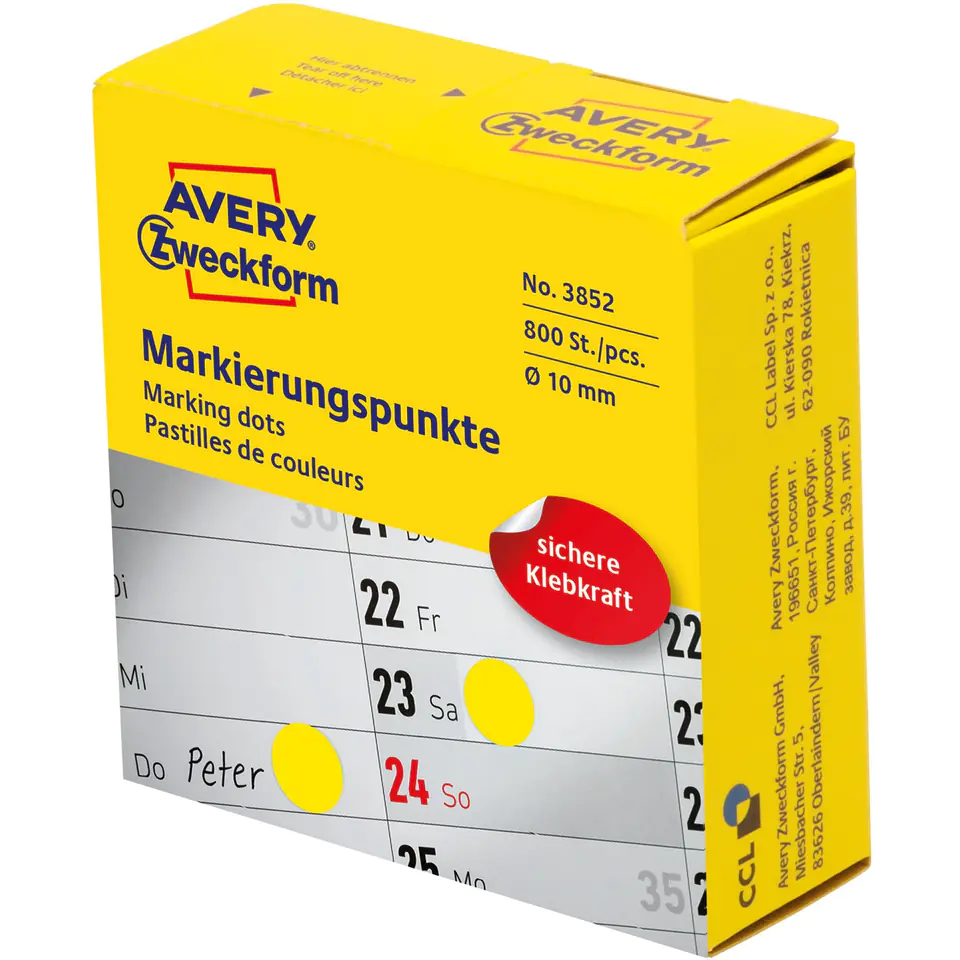 Kółka w dyspenserze trwałe 800szt. 10mm żółte 3852 AVERY ZWECKFORM