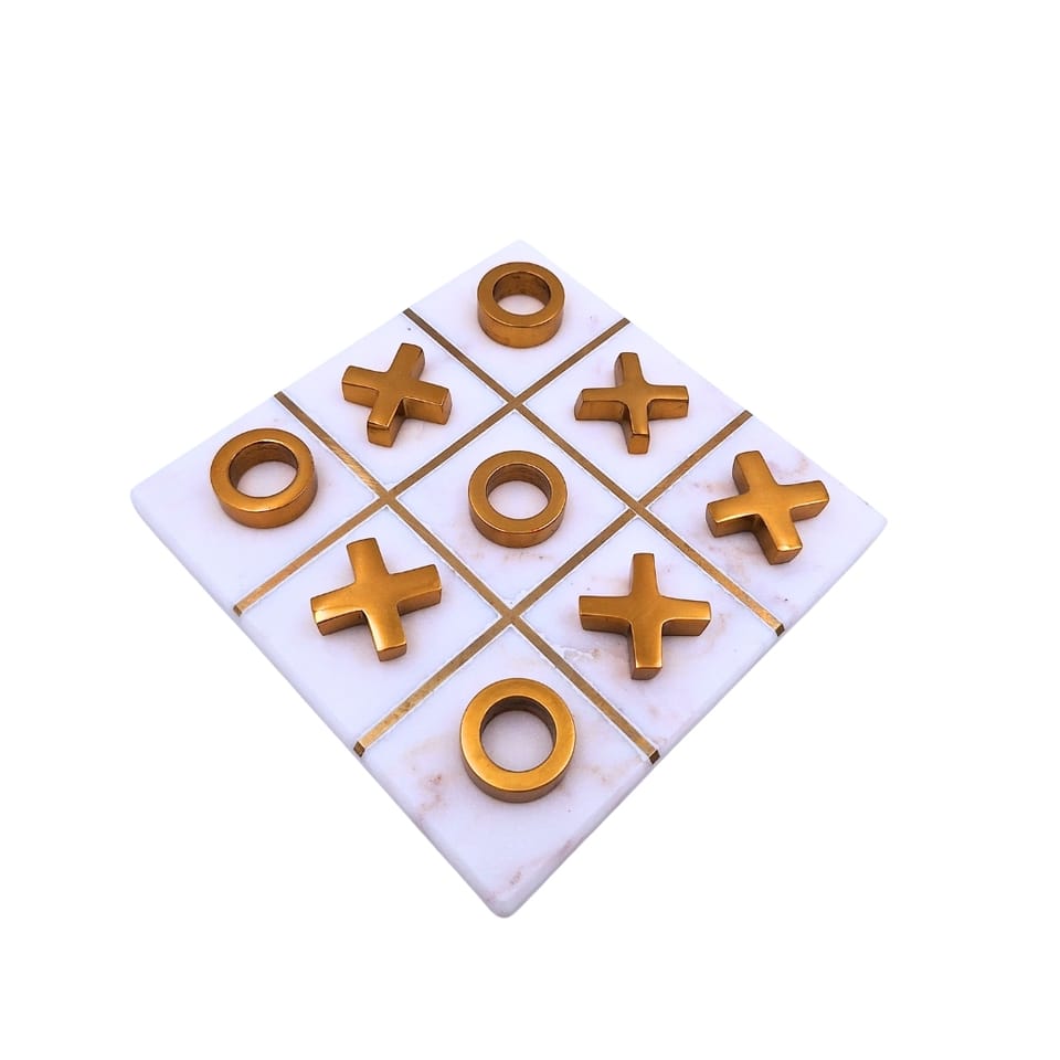 Gra kółko i krzyżyk na podstawie marmurowej - 1598 Kółko i krzyżyk na marmurowej podstawie to elegancka wersja klasycznej gry strategicznej popularnej w dzieciństwie. Dobry pomysł na niewielki upominek dla bliskiej osoby. Sprawdzi się jako dekoracja w pomieszczeniach w stylu glamour. Informacje o produkcie: • Wymiary: 14 x 14 cm • Materiał: marmur, mosiądz • Ponadczasowa gra tradycyjna w eleganckim wydaniu