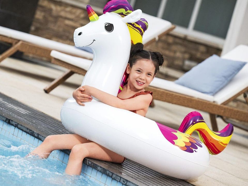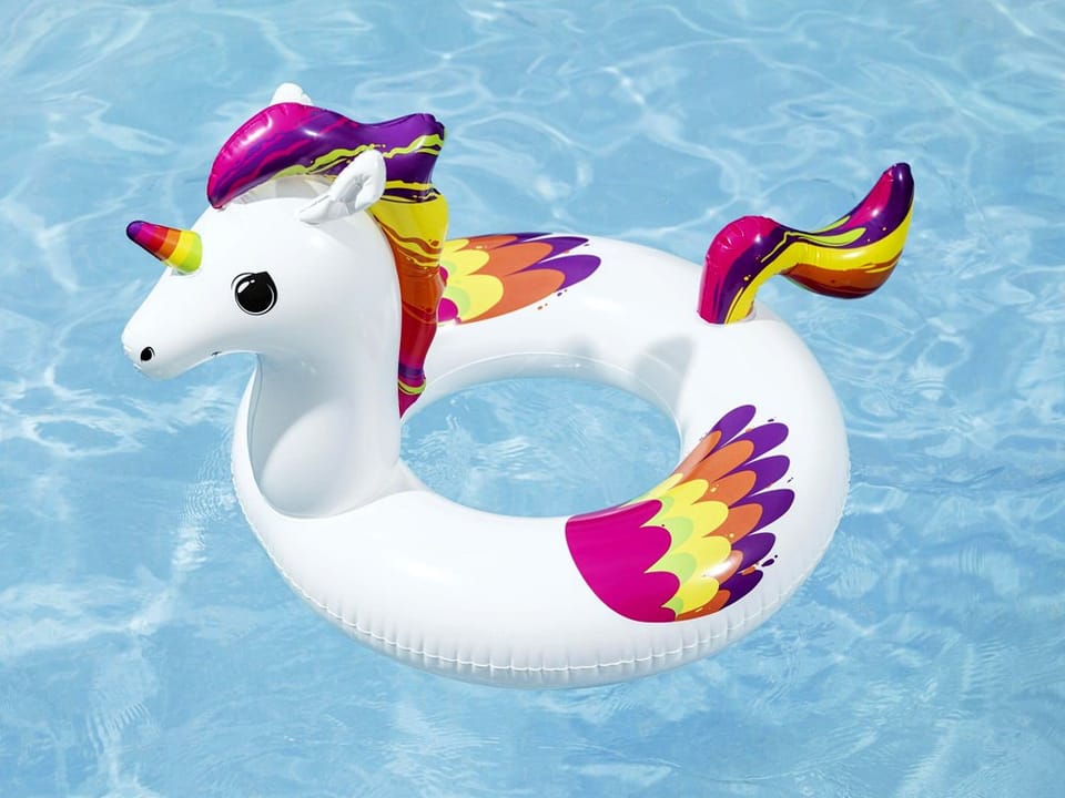 Koło dmuchane Bestway Jednorożec ubarwi wakacje i letni czas nad wodą. Modny motyw jednorożca. Piękna, żywa kolorystyka. Duże koło do pływania sprawdzi się również jako fotel do odpoczynku nad wodą. Mocny winylowy materiał. Dwie komory powietrzne.