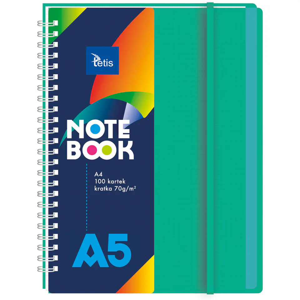 Wysokiej jakości kolonotatnik w oprawie PP. Posiada plastikowe transparentne przekladki (5 sztuk) i gumke dopasowaną do koloru okladki.