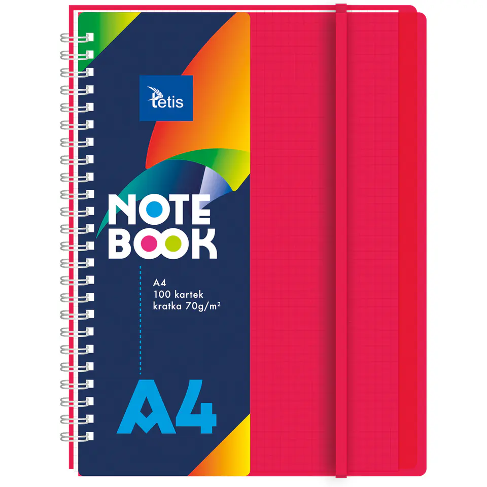 Wysokiej jakości kolonotatnik w oprawie PP. Posiada plastikowe transparentne przekladki (5 sztuk) i gumke dopasowaną do koloru okladki.
