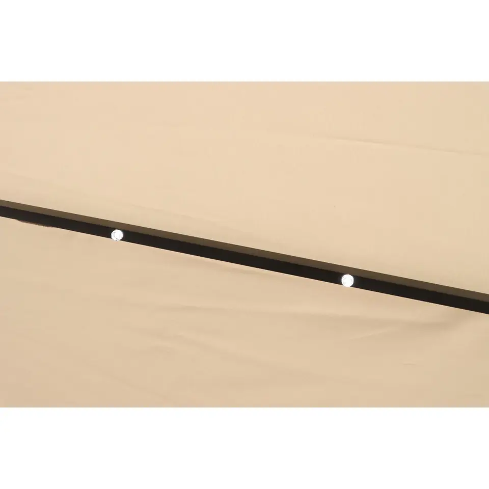 Wbudowane oświetlenie LED sprawia, że parasol może być używany również wieczorem. Daje to możliwość korzystania z ogrodu po zmroku, tworząc przyjemną, romantyczną atmosferę. Diody LED zasilane są panelem słonecznym umieszczonym na górze parasola, należy jednak pamiętać, że lampki będą prawidłowo działać tylko po naładowaniu akumulatorka w słoneczny dzień.