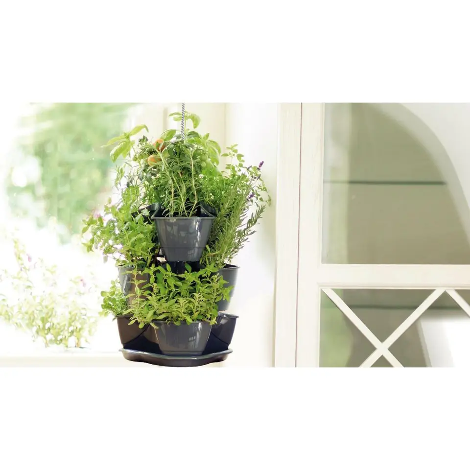 - do wewnątrz i na zewnątrzłatwy w montażu i demontażu lekka, plastikowa konstrukcjakażdy poziom wyposażony we wkładki drenażowe i otworypodstawka dołączona do zestawu zbierze nadmiar wody po podlaniuwykonany w całości z tworzywa sztucznego odpornego na wilgoć3 doniczki do wykorzystania razem lub osobno