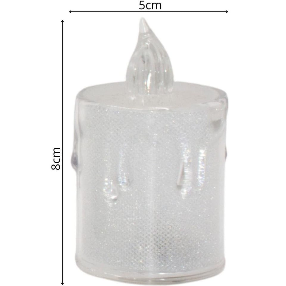 - Ilość w zestawie: 3 sztMateriał: tworzywo sztuczne PP, LEDKolor: biały - transparentny z efektem brokatu po zapaleniu diodyWymiary: 5x5x8cm, 5x5x10,5cm, 5x5x12,5mm (śr. x wys.)Ilość LED: 1 na każdą świeczkęRodzaj światła: ciepłe, białeWłącznik on/off: takEfekt płomienia: nieWaga produktu ok.: 0,146 kgZasilanie: bateria 3X LR44 w zestawieMarka: CHRISTMAS DECORATION