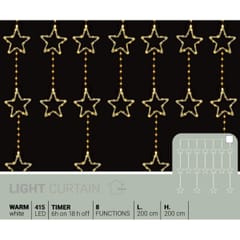 Niech Twój dom rozbłyśnie świątecznym światłem! LAMPKI CHOINKOWE KURTYNA ŚWIETLNA 200x200 CM 415LED CIEPŁY BIAŁY GWIAZDKI to połączenie stylu, funkcjonalności i magii. Wybierz wzór – gwiazdę lub płatek śniegu – i ciesz się delikatnym blaskiem, który otuli Twój dom ciepłem i świątecznym urokiem.
