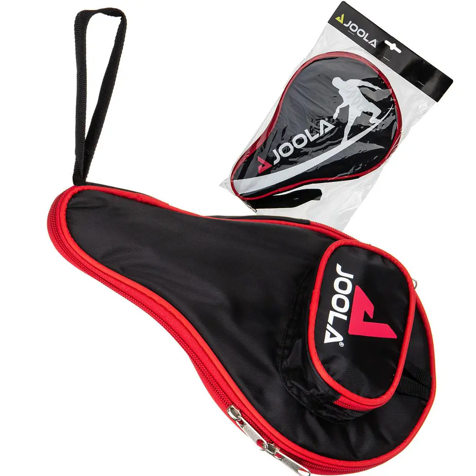 Nylonowy pokrowiec na rakietkę, zapinany na suwak na całym obwodzie, posiada kieszonkę na piłeczki. Poręczny pasek na nadgarstek.