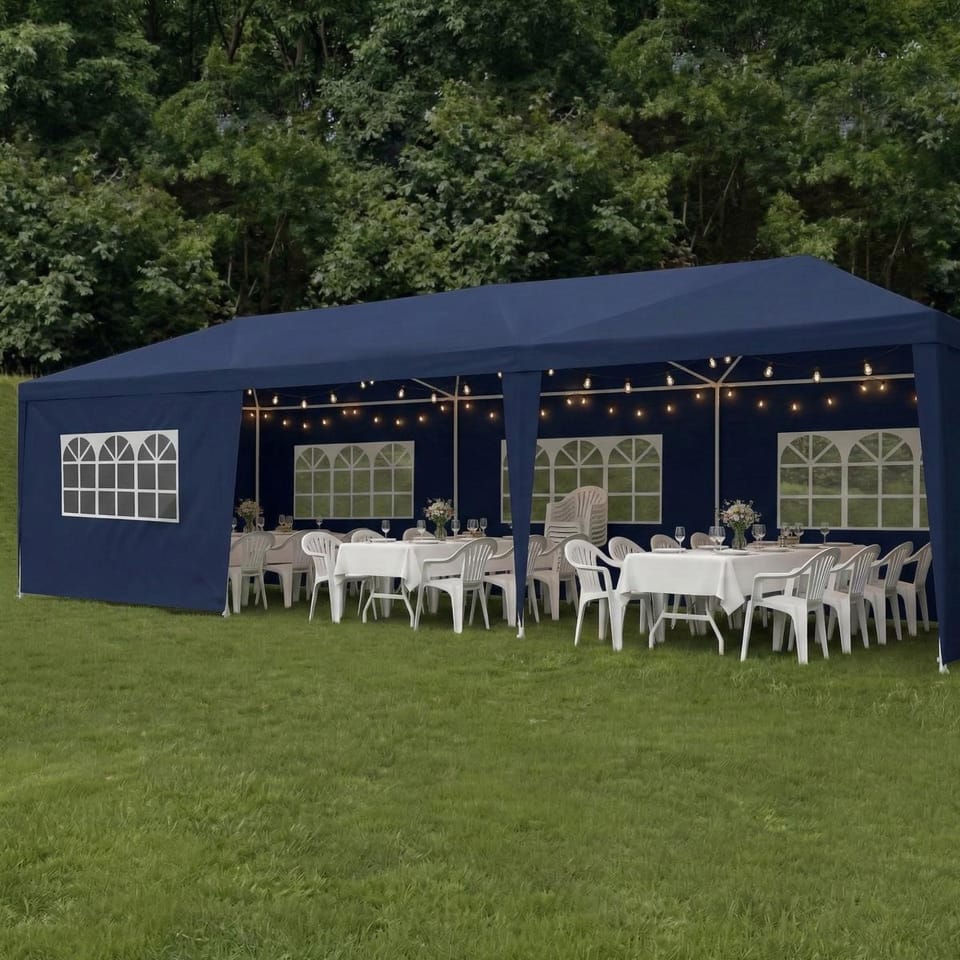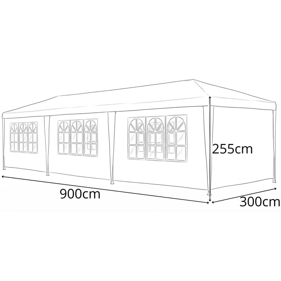 Zorganizuj imprezę, spotkanie rodzinne, event lub punkt sprzedaży na świeżym powietrzu. Uchroń się przed wiatrem, deszczem i palącym słońcem. Dzięki solidnej konstrukcji i mocnej powłoce, nie przeszkodzi Ci nawet kapryśna pogoda. Z pawilonem - namiotem Saska Garden, każdy pomysł na zewnątrz będzie udany.Altana ogrodowaNamiot jest idealny do postawienia w ogrodzie lub na tarasie. Chroni przed słońcem i zapewnia cień. Niedzielny obiad z rodziną lub wieczór ze znajomymi w ogrodzie uprzyjemni wam pawilon Saska Garden. Aranżacja wnętrza altany zależy tylko od Twojej wyobraźni. Masz szerokie możliwości i sporo miejsca, by zamontować w niej oświetlenie, dekoracje, ustawić stoły i meble, niezbędne podczas plenerowych uroczystości. Namiot jest wygodny w użytkowaniu i łatwy w montażu.Na imprezę, wydarzenieNamiot wykorzystasz do organizacji imprez cyklicznych, sezonowych i objazdowych lub dowolnego wydarzenia plenerowego. To doskonała opcja dla bankietu, eventu i dowolnej uroczystości aby uchronić catering, gości i uczestników przed niekorzystną pogodą, jak nadmierne słońce, wiatr i deszcz. Dzięki namiotowi stworzysz miejsce dla swoich gości, gdzie komfortowo skorzystają z atrakcji, które dla nich przygotowano.Jako stoisko, pawilon handlowyUniwersalne zastosowanie umożliwi Ci wykorzystanie namiotu także jako pawilonu handlowego. Wystarczy rozłożyć stelaż i ściany, by zyskać dobre miejsce do prowadzenia sprzedaży. Teraz stoisko będzie osłonięte z bocznych stron, a Ty zyskasz większą kontrolę nad miejscem handlu. Zabezpieczysz się także przed drobnym wiatrem, deszczem lub palącym słońcem w lecie.Użytkowanie: w przypadku silnego deszczu, wichury i podobnych ekstremalnych warunków pogodowych, pawilon należy zdemontować i odłożyć w suche, bezpieczne miejsce. Parametry:• Wymiary mierzone przy ziemi na dole pawilonu ok.: szerokość 300 cm / długość 900 cm/ wysokość 255 cm• 8 ścian bocznych:- 6 ściany z oknem- 2 ściany z drzwiami na zamek• Zamek na dwóch drzwiach, 2 szt. • Materiały- Dach: PE, 90g- Rama: stal malowany proszkowo GAZEBO/ grubości rurek - 3 mm, 24 mm, 18 mm• Waga netto: 21.5 kg• Waga brutto: 22.5 kg• Opakowanie: 23 x 30 x 109 (karton)• Marka: Saska Garden