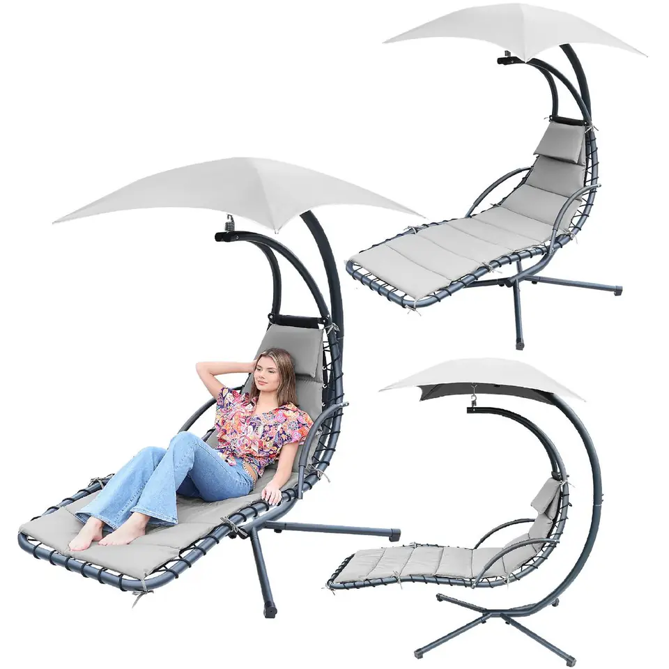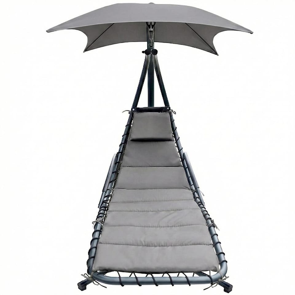 Nie zwlekaj z zakupem, Z HUŚTAWKĄ FOTELEM WISZĄCYM BUJANYM Z PARASOLEM LIZBONA SZARY relaks na świeżym powietrzu to czysta przyjemność!