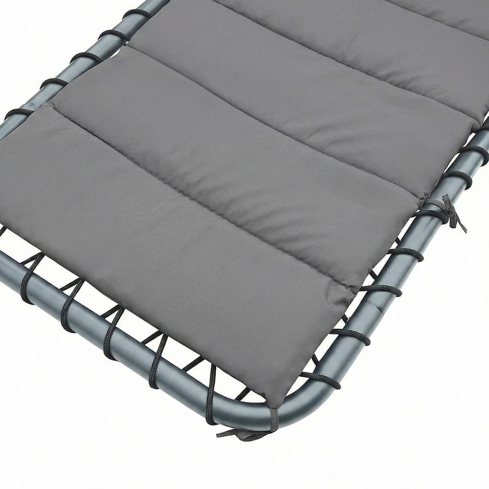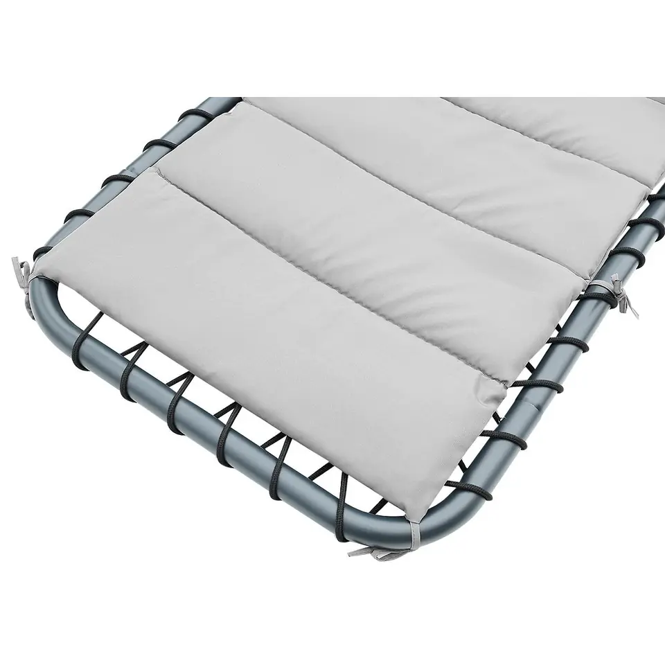 - Materiały: stal malowana proszkowo, pokrycie materaca - poliester 180 g/m2, poduszka - poliester 160 g z wypełnieniem, textilene 2x1