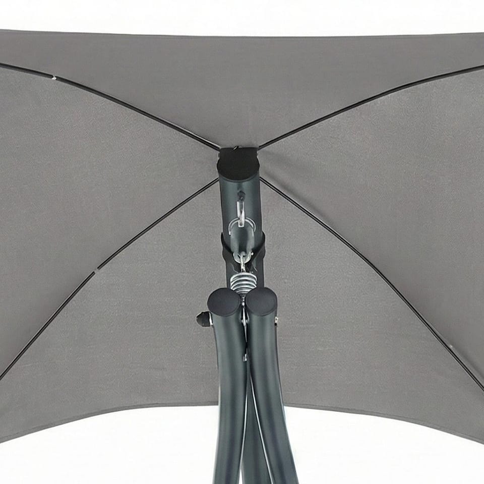 Mocny stalowy i gruby stelaż utrzyma maksymalnie udźwig aż do 130 kg, a parasol, który jest w komplecie, osłoni Cię przed mocnym słońcem.