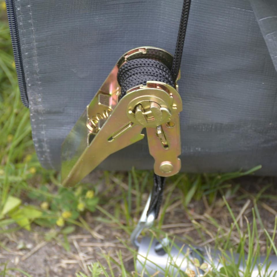 4 praktyczne napinacze w zestawie ułatwiają naciąg materiału dachu, zapewniając jego stabilność nawet przy wietrznej pogodzie. To zwiększa trwałość pawilonu i zabezpiecza przed rozdarciem poszycia. Dzięki nim dach zachowuje estetyczny, równy wygląd.