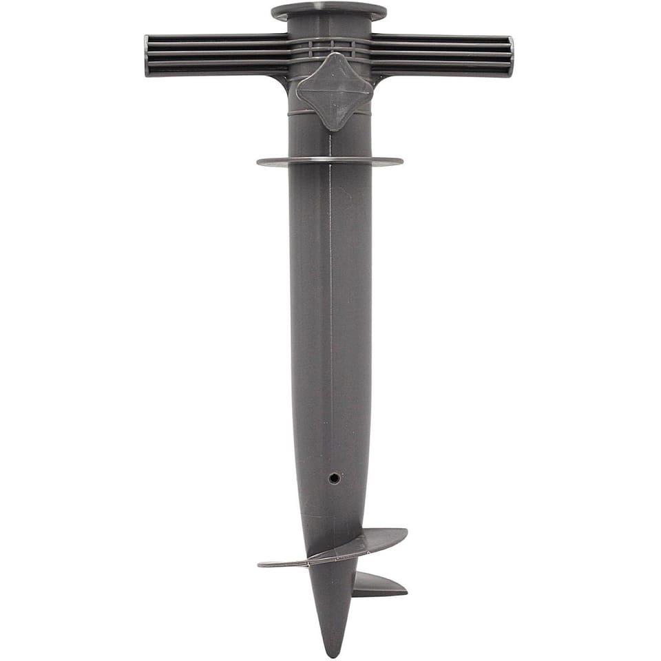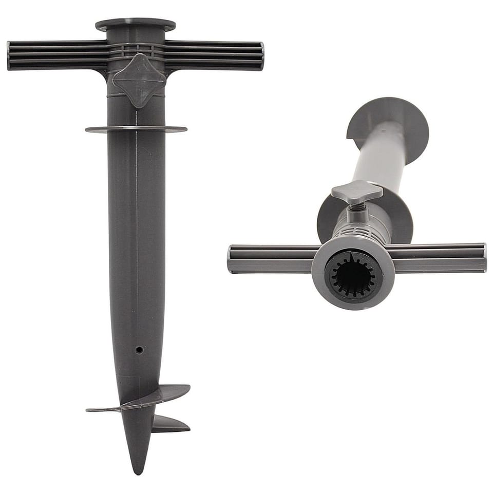 Wkręcana baza zapewnia solidne i stabilne mocowanie parasola, co minimalizuje ryzyko przewrócenia się nawet przy silnym wietrze. Długi i szeroki szpikulec pozwala mocno przytwierdzić bazę do piasku zwiększając jej stabilność.