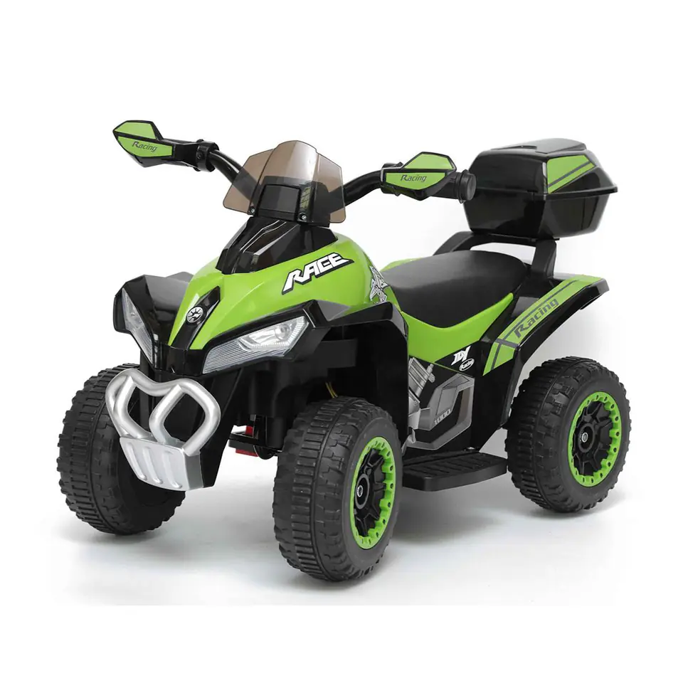 - Wymiary: 78.5 x 40.5 x 46 cm (dł. x szer. x wys.)Wymiary kuferka: 10 x 17 x 17 cm (wys. x szer. x gł.)Wymiary siedzenia: 28 x 15,5 x 4,5 cm (dł. x szer. x wys.)Wymiar kółka: 18 x 7,5 cm (śr. x szer.)Wymiar kierownicy: 40 cm (szer.)Wymiar rączek w kierownicy: 7 x 2,5 (szer. x śr.)Kolor: Zielony, czarnyINPUT: 110- 240 VSilnik: 380WAkumulator: pojemność 6 V 4,5 AhZalecany wiek: Dzieci w wieku powyżej 3 latWaga maksymalna użytkownika: 20 kgPrędkość: 3 km/hCzas ładowania: 8-12 godzin / PRACA: 1-2 GODZ.Baterie pilota: BRAK PILOTAŁadowarka: DC6V500mAOpakowanie: 64 x 35 x 29,5 cm (szer. x gł. x wys.)Waga netto : 4,960 kgWaga brutto : 5,800 kgMarka: ENERO