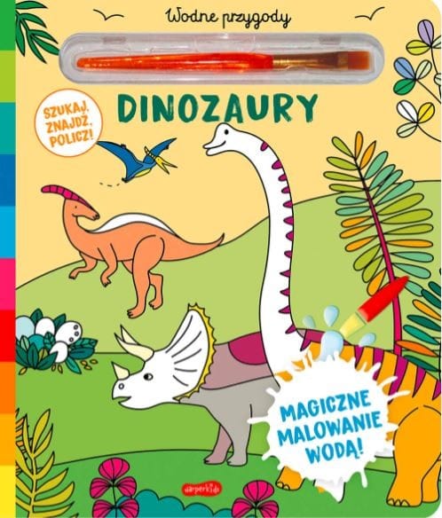Przedstawiamy Państwu zupełną nowość: kolorowankę Dinozaury. Akademia Mądrego Dziecka. Wodne przygody dla wszystkich małych pasjonatów prehistorycznych gadów. To niezwykła, magiczna kolorowanka. Trzeba zanurzyć pędzelek w wodzie, a następnie pomalować białe miejsca na stronach. Magicznie pojawią się różne barwy. Gdy obrazek wyschnie, kolor zniknie i będzie można rozpocząć zabawę jeszcze raz.