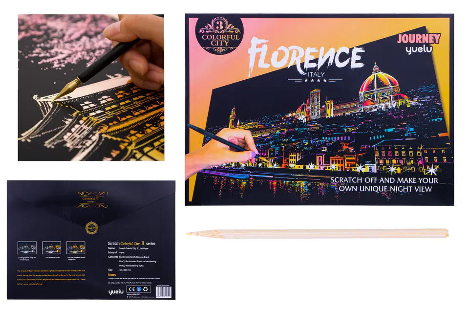 Przedstawiamy niesamowitą MAGICZNĄ ZDRAPYWANKĘ prezentującą . Za swoją czarną powierzchnią zdrapka ukrywa najlepszą nocną scenerię na świecie. Wystarczy zdrapać szare linie drewnianym rysikiem, a każda linia stanie się kolorową częścią niesamowitej nocnej scenerii.