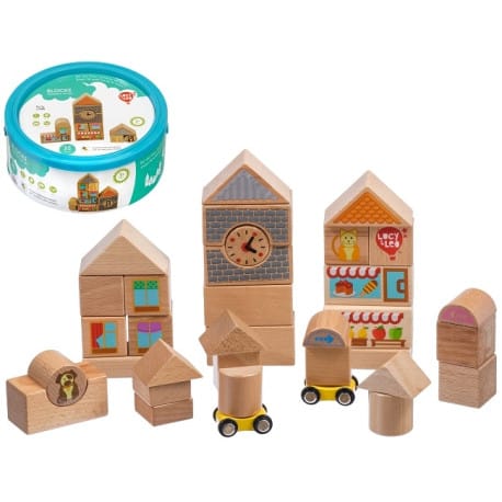 Kolorowe klocki drewniane – Miasto – 32 elementy Wymiary opakowanie: 22,5 x 9,5 cm Produkt przeznaczony dla dzieci od 3. roku życia. Posiada certyfikat CE. LL175