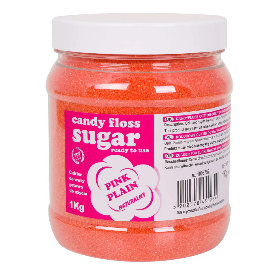 Candyfloss cotton candy sugar pink plain. Coloured and flavoured sugar. Ready to use in candy floss maker.