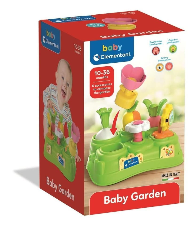 Bardzo kolorowy i wesoły ogród zaprojektowany, aby zapewnić dziecku zabawne i naturalne wsparcie, gdy odkrywa kształty i kolory oraz rozwija swoją zręczność manualną.\n Najmłodsze dzieci będą się dobrze bawić, umieszczając kwiaty i warzywa w odpowiednich miejscach.\n Stymuluje koordynację ręka-oko i percepcję wzrokową.