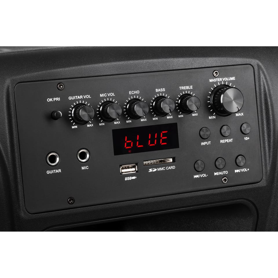 Zabawa przy muzyce to za mało? Do zestawu zostały dołączone dwa bezprzewodowe mikrofony , które pozwolą zorganizować karaoke. Dodatkowo, kolumna głośnikowa posiada wejście gitarowe , która umożliwia uatrakcyjnienie koncertem na żywo!