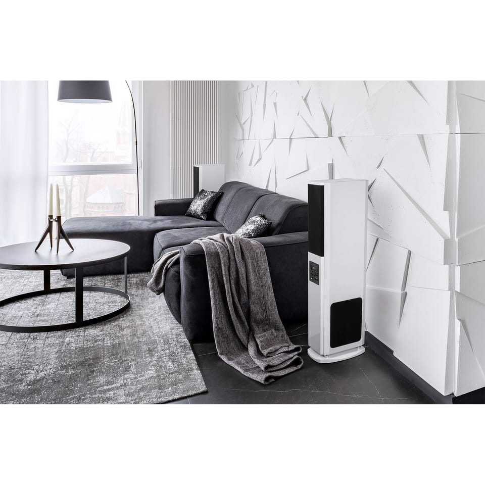 Aktywne kolumny głośnikowe Kruger&Matz Passion 2.0 Aktywne kolumny głośnikowe Kruger&Matz Passion 2.0 to zestaw dwóch 3-drożnych kolumn zbudowanych w konstrukcji bas refleks. Moc wyjściowa 2x 80 W oraz wysoka jakość wykorzystanych przetworników to połączenie, które dostarczy Ci niezapomnianych wrażeń podczas słuchania muzyki czy oglądania filmów. Głośniki w zestawie stereo To co charakteryzuje aktywne kolumny Kruger&Matz Passion 2.0 to zrównoważone brzmienie. Za przetwarzanie dźwięków ze środka i góry pasma odpowiadają 3 przetworniki umieszczone z przodu kolumny: dwa 5-calowe głośniki średniotonowe z celulozową membraną oraz 1?calowy tweeter z jedwabną kopułką. Kolumny głośnikowe z subwooferem Głębokie i czyste brzmienie najniższych tonów zapewnia 8-calowy głośnik niskotonowy z celulozową membraną, o pasmie przenoszenia od 36 Hz. Ogromną zaletą jest jego umiejscowienie - przetwornik został umieszczony w bocznej ścianie, dzięki czemu udało zachować się smukły kształt kolumn. Kolumny z wbudowanym wzmacniaczem Cenisz praktyczne rozwiązania? Kolumny Kruger&Matz Passion 2.0 posiadają wbudowany wzmacniacz, co oznacza, że znikną problemy związane z doborem dodatkowego sprzętu oraz koniecznością podłączania dużej ilości kabli. Izolacja drgań w kolumnach Wybierając kolumny głośnikowe Passion 2.0 nie musisz dokupować podkładek redukujących drgania. Kolumny Kruger&Matz posiadają cokoły z tulejami oraz nóżki z tworzywa sztucznego, które pełnią funkcję izolatorów drgań obudowy. Kolumny z modułem Bluetooth Twoja cała muzyczna biblioteka znajduje się na telefonie? Zapomnij o łączeniu urządzeń za pomocą kabla! Funkcja Bluetooth pozwoli Ci na bezprzewodowe parowanie kolumn głośnikowych ze smartfonem. Szybko i wygodnie! Wejścia i wyjścia w kolumnach Chcesz odtwarzać muzykę z innych źródeł? Kolumny Kruger&Matz Passion 2.0 posiadają szereg wejść audio: RCA, coaxial, optyczne, które pozwolą podłączyć je pod telewizor lub gramofon. Kolumny posiadają także port USB, dzięki czemu będziesz mógł słuchać muzyki z pendrive?a oraz gniazdo anteny umożliwiające słuchanie radia FM lub cyfrowego radia DAB+. Panel sterowania Na froncie kolumn Kruger&Matz Passion 2.0 umieszczony został panel sterujący, umożliwiający zarządzanie funkcjami zestawu. Oprócz przycisków znalazły się tam zwiększający komfort użytkowania wyświetlacz oraz kontrolka Bluetooth, informująca o parowaniu urządzeń. Zestaw kolumn z pilotem Cenisz sobie wygodę? Do zestawu kolumn Kruger&Matz Passion 2.0 został dołączony pilot, dzięki któremu możesz np. zarządzać muzyką, wybierać źródło odtwarzania czy regulować tony niskie i wysokie. Wszystko to, bez podnoszenia się z kanapy. Kolumny do salonu Aktywne kolumny Kruger&Matz Passion 2.0 to nie tylko wysoka jakość dźwięku, ale także niebagatelny wygląd. Smukła obudowa wykończona czarnymi maskownicami sprawia, że są to idealne kolumny do salonu. Dostępność w trzech wariantach kolorystycznych to gwarancja, że z pewnością znajdziesz model, który doskonale wkomponuje się we wnętrze Twojego mieszkania.