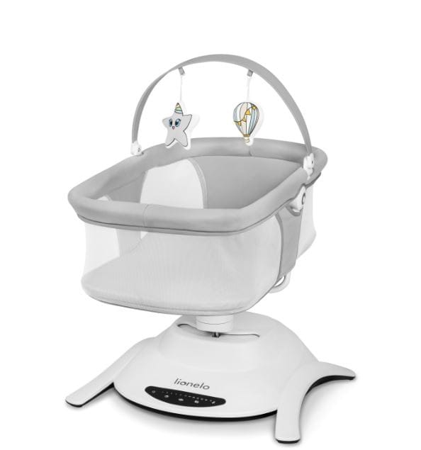 O wszystkich ustawieniach produktu zdecydujesz z poziomu dotykowego panelu sterowania lub za pomocą pilota. Dzięki cichej pracy silnika, możesz mieć pewność, że nie wybudzi dziecka, kiedy utnie sobie słodką drzemkę. Model ten odtwarza 12 spokojnych melodii oraz pałąk z zabawkami - 3 w funkcji bujaczka, 2 w funkcji łóżeczka. Akcesoria dodatkowo ćwiczą koncentrację dziecka, dostarczają mu nowych bodźców i zachęcają do wyciągania rączek. Bujaczek Lionelo Bella Set 2w1 jest lekki, bez problemu przeniesiesz go i ustawisz w dowolnym miejscu. Podłogę przed zarysowaniem ochronią podkładki antypoślizgowe. W przypadku zabrudzeń ramę możesz przetrzeć mokrą szmatką, a poszycie i pokrowiec materaca prać ręcznie.