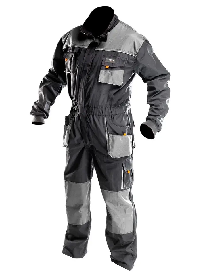 Kombinezon roboczy, rozmiar L/52, 35% bawełna, 65% poliester, 267 g/m2, wzmocnienia z tkaniny Oxford, wzmocnione kieszenie, odblaskowy element na plecach, potrójne szwy, możliwość włożenia nakolanników, CE, EN ISO 13688:2013