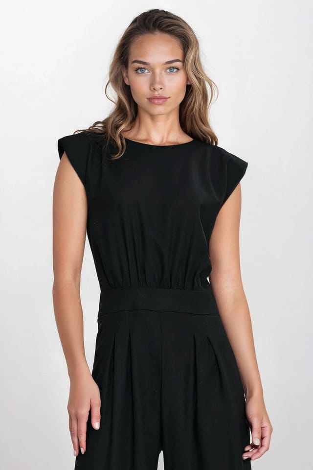 Kombinezon z rayonu z nogawkami palazzo - czarny - KM42 kolor czarny, rozmiar 40